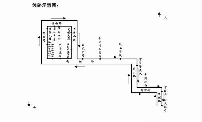 101線路自2011年3月23日起,將原線路調(diào)整為單向循環(huán),起止站為市公交公司,不再進(jìn)公交西站。西城部分路段調(diào)整后走向:由市公交公司發(fā)車(東城線路不變),沿黃河路直行經(jīng)玉景花園、油田運輸公司、油田物資公司、百貨大樓、供銷商場、商業(yè)大商、油田一中、光彩大廈、勝大中心超市、協(xié)和醫(yī)院、公交西站,經(jīng)黃河路返回公交公司。以上站點按順時方向靠路右側(cè)站點停車上下乘客,其他路段與原線路、站點相同,票價不變。歡迎廣大乘客屆時乘車。