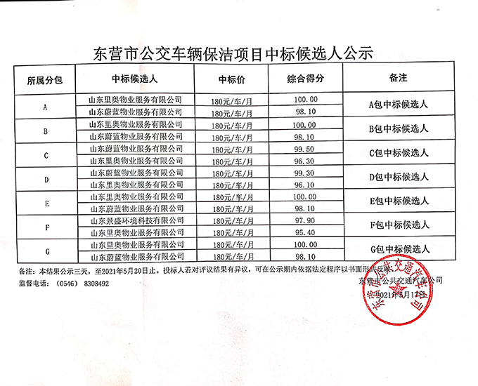 東營市公交車輛保潔項目中標候選人公示