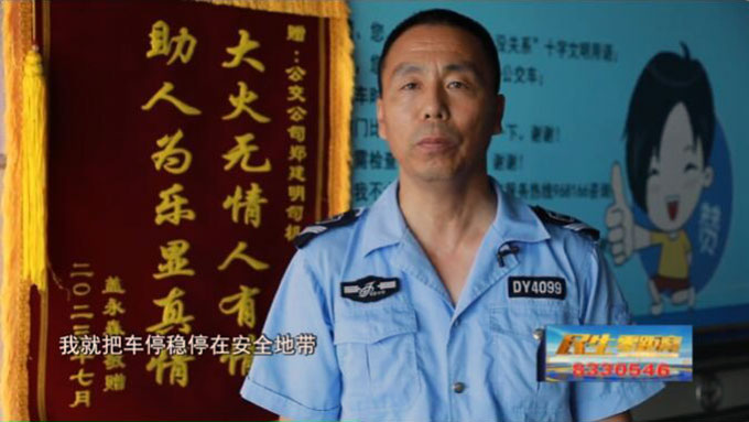 近日,東營市公交集團汽車四隊駕駛員鄭建明駕駛107路公交車行駛到北二路化工學院附近時,突然發現前方路邊停著一輛著火的小貨車,于是迅速停車幫助滅火。事后,小貨車車主為表示感謝特意制作了錦旗送到車隊,此事在東營電視臺播出。