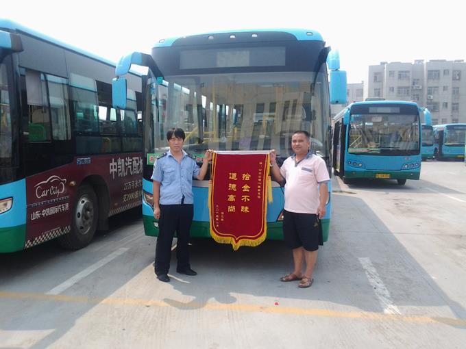 2013年8月15日,在東營市公路局工作的石忠軍師傅為公交駕駛員李長征送來了一面“拾金不昧、品德高尚”的錦旗表示感謝。