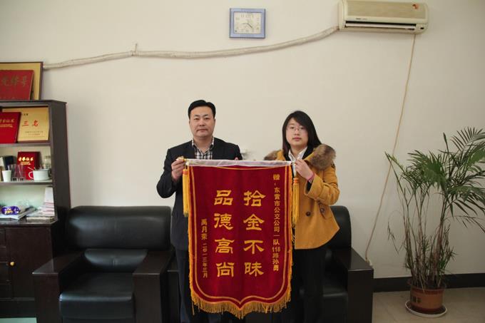 4月9日上午,康源律師事務(wù)所的禹月榮女士拿著一面寫有“拾金不昧、品德高尚”的錦旗來(lái)到市公交公司汽車一隊(duì),感謝車隊(duì)駕駛員孫勇師傅的高尚品德。據(jù)車隊(duì)了解得知,4月4日,禹月榮女士乘坐孫勇師傅駕駛的118路去上班,上班以后發(fā)現(xiàn)裝有重要文件的拎包不見(jiàn)了,她心急如焚,當(dāng)時(shí)就癱坐在地上,因?yàn)榘锩嫜b有五個(gè)檔案袋,卷中裝有重要的訴訟材料,其中很多資料無(wú)法彌補(bǔ),后果不堪設(shè)想。