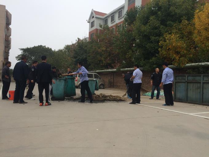 衛(wèi)生大掃除中,他們或三人一伙,或五人一組,有的負(fù)責(zé)修剪參差不齊的綠化帶,有的負(fù)責(zé)清理枯黃的雜草,有的負(fù)責(zé)拿著垃圾袋拾撿煙頭,有的負(fù)責(zé)清掃被風(fēng)卷到墻角的垃圾,有的負(fù)責(zé)裝卸和拖運(yùn)垃圾箱,一個(gè)個(gè)忙的滿頭大汗,即使飛揚(yáng)的塵土沾滿了衣服也全然不顧,令人為之動容。