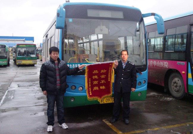 2010年12月13日上午,東營區(qū)龍居鎮(zhèn)麻灣村孫路、趙雪冒著紛紛揚揚的雪花來到市公交公司汽車三隊,將一面寫有“拾金不昧、品德高尚”的錦旗送到車隊領導手中,對139路駕駛員孫明軍同志表示感謝,并對公交公司培養(yǎng)出這么好的員工表示敬意。