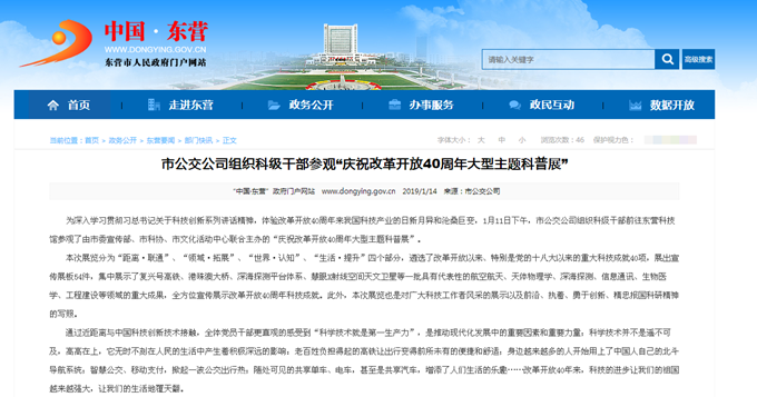 2019年1月30日東營市政府網(wǎng)站報道